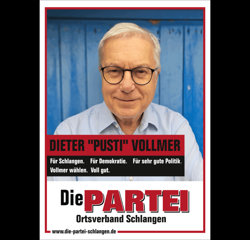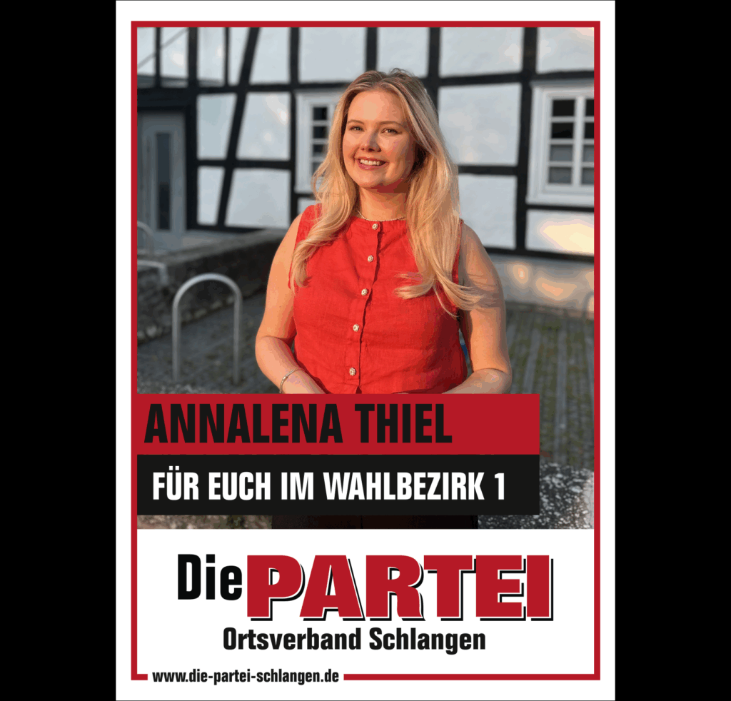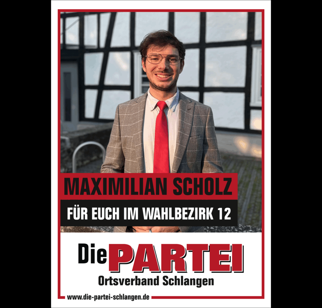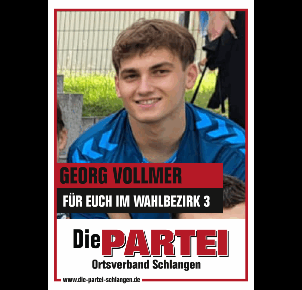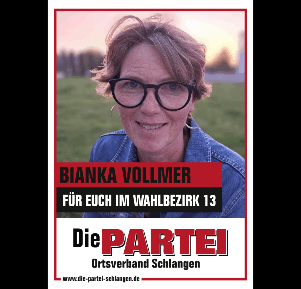 Mit Beginn der Legislaturperiode ist Die PARTEI im Schlänger Gemeinderat vertreten. Die Fachausschüsse und Drittorganisationen haben wir mit unseren Mandatsträgen sowie sehr kompetenten Sachkundigen Bürgern:innen besetzt.